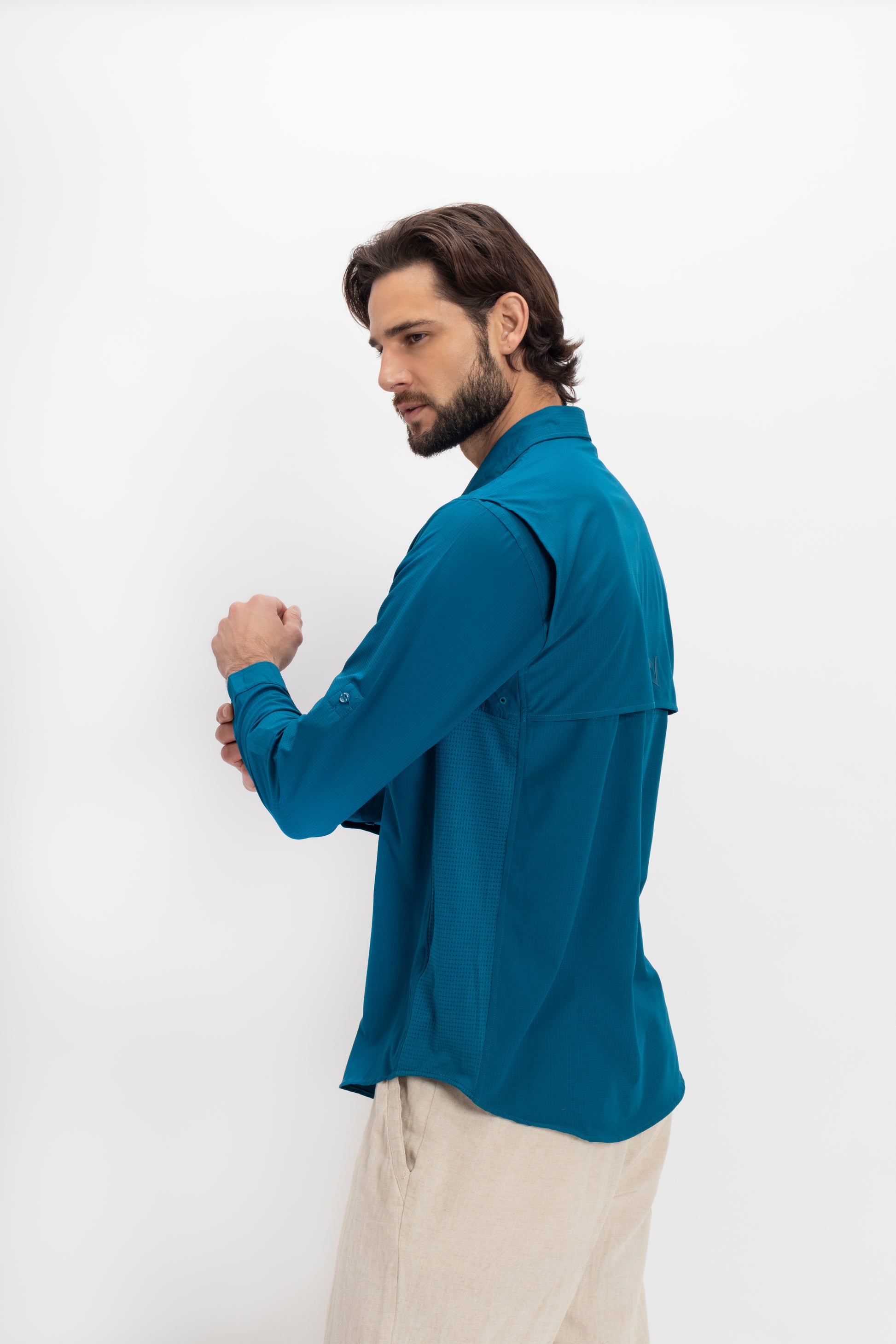 Ya sea que estés trabajando a distancia o explorando nuevos terrenos, esta camisa combina un diseño elegante con una funcionalidad de alto rendimiento, lo que la convierte en el compañero perfecto para tu viaje.