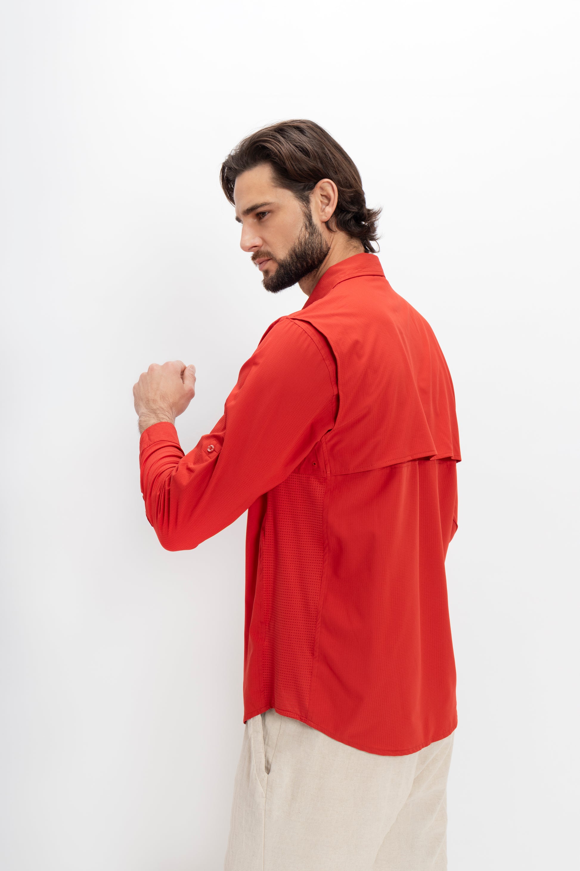 Ya sea que estés trabajando a distancia o explorando nuevos terrenos, esta camisa combina un diseño elegante con una funcionalidad de alto rendimiento, lo que la convierte en el compañero perfecto para tu viaje.